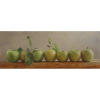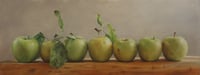When I started unloading the big bin of apples we had picked, one in particular caught my eye, and I knew I had to paint it, so I set it aside. Then, I could clearly see the perfection in every next apple I picked up. I couldn't resist the intrinsic femininity of these forms, and the many layers of symbolism imbued in this most ordinary of fruit. A still life was set up, and this painting was made.
